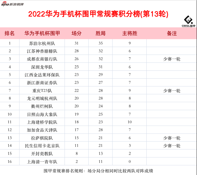 2月5日,2022华为手机杯围棋甲级联赛终末一场补赛将延续在成齐进行;成齐农商银行2-2主将胜重庆T23队、民生信用卡北京队1-3拉萨棋院。